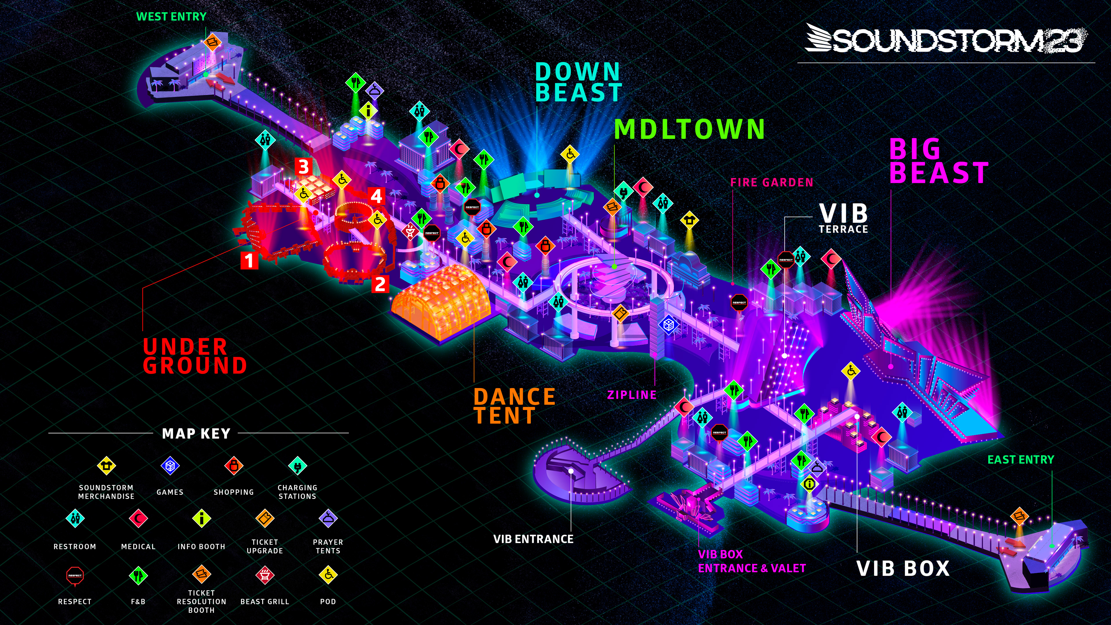 Festival map design for Soundstorm, one of the largest music festivals in the region held in Riyadh.